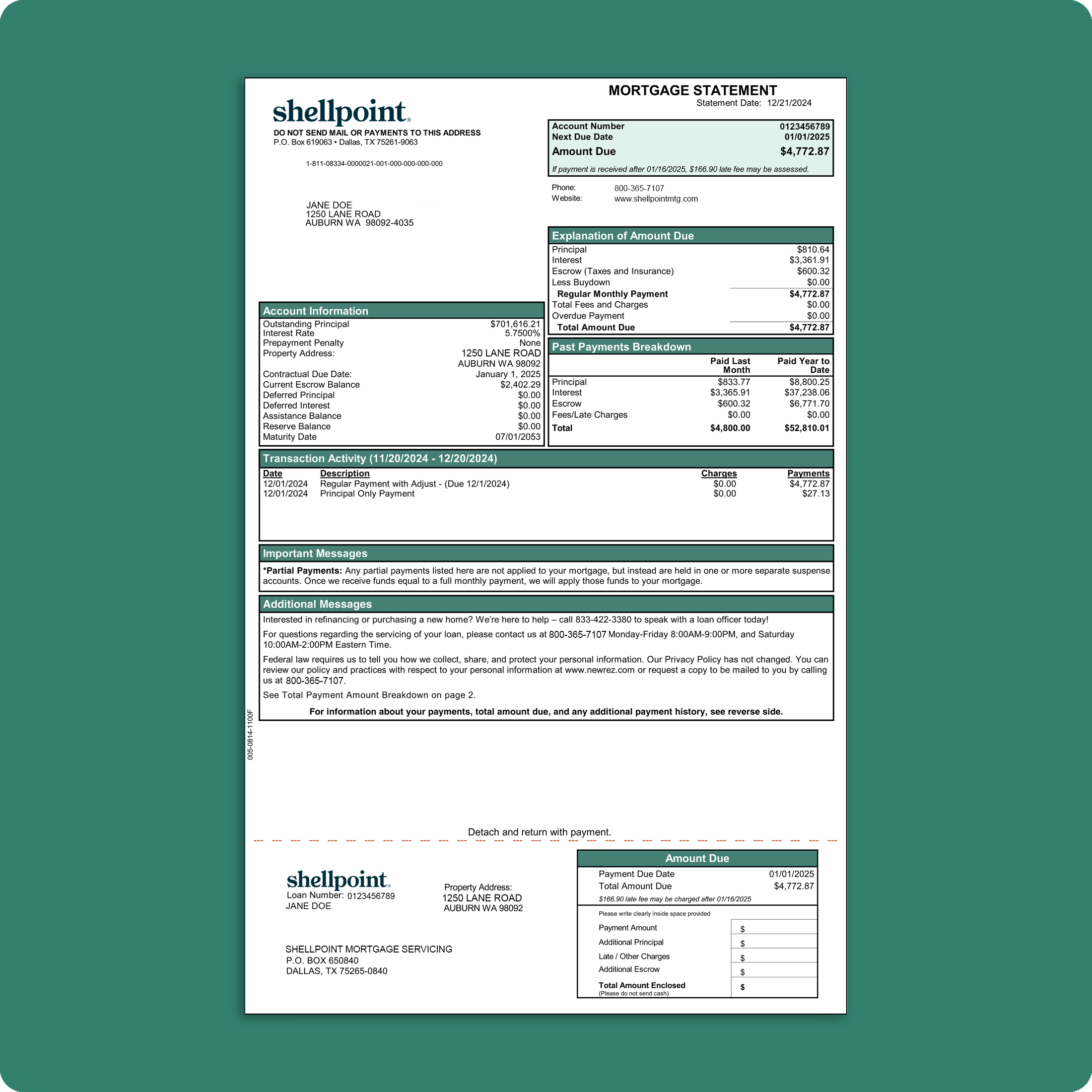 At Shellpoint, we know that keeping up with mortgage payments can sometimes feel like a juggling act—especially when life throws other financial priorities your way. That’s why we’ve created flexible payment options that fit your lifestyle and simplify the process. Whether it’s setting up automatic withdrawals or using our easy online tools, we’re here to help you stay in control and make managing your mortgage feel effortless.
